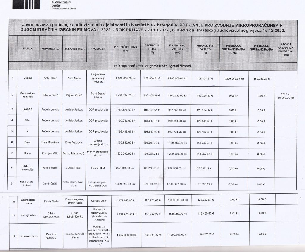 Trogodišnja bilanca „mikroproračunskih“ filmova: odlična ideja, solidna žetva i niz pikanterija – odbijeni projekti Kristijana Milića, Zvonimira Rumbolta, Damira Čučića, Damira Radića, film „Marginalci“; Anđelo Jurkas prijavio „rekordnih“ devet svojih filmova; HAVC je i ovdje „tajanstven“ i „zakopčan do grla“ što se tiče transparentnosti