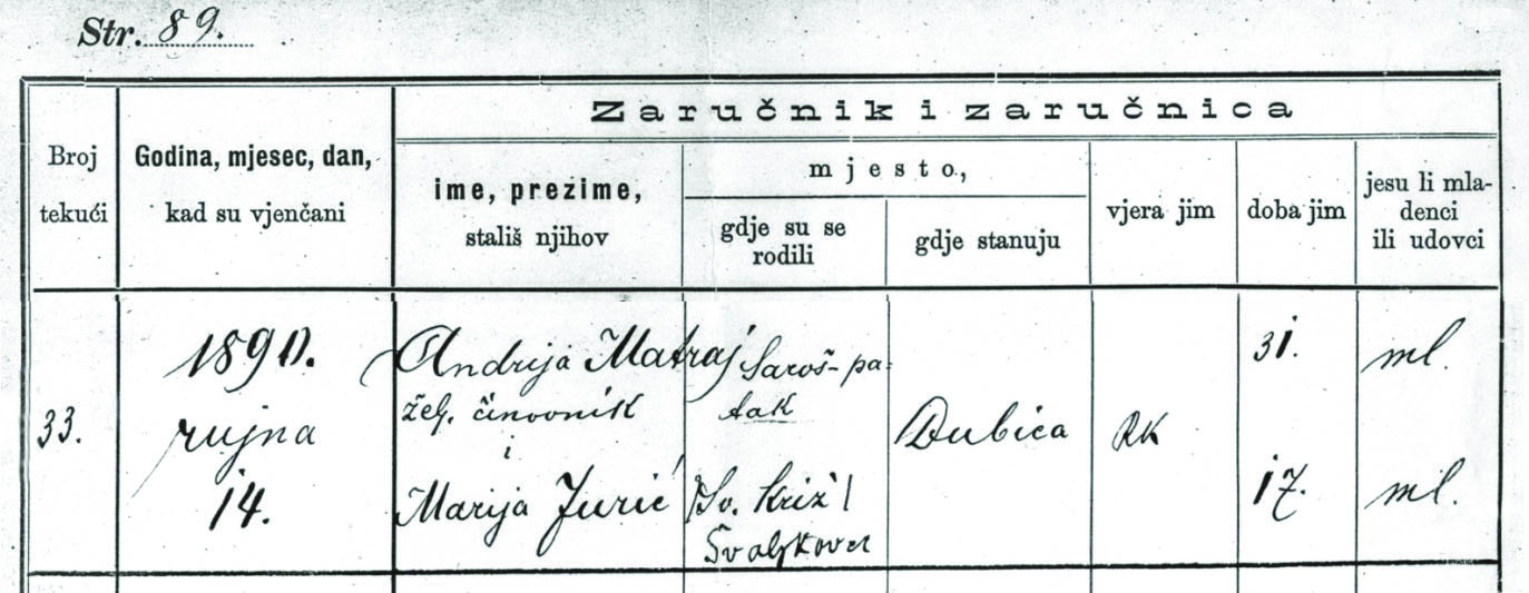 Izvod iz Matične knjige vjenčanih, Državni arhiv u Varaždinu; presnimio Marijan Tenšek