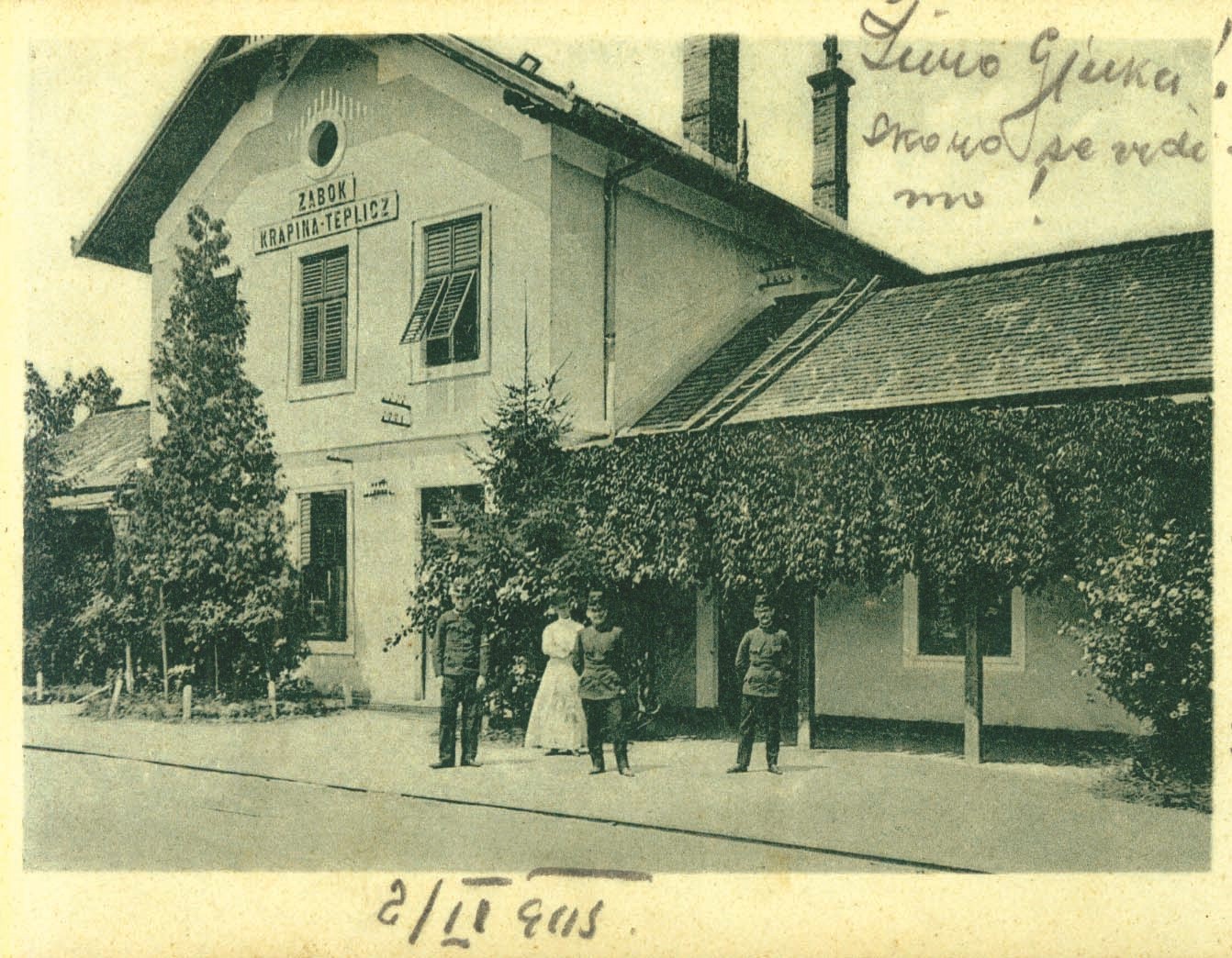 Zgrada željezničke postaje u Zaboku, u kojoj je nakon udaje kratko živjela Zagorka sa suprugom Matrajem (razglednica s početka 20. stoljeća); iz arhive Marijana Tenšeka