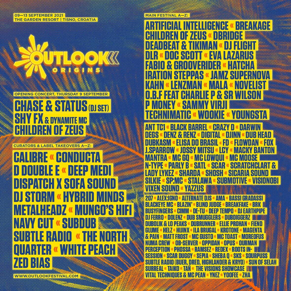 Najveći europski festival bass glazbe i soundsystem kulture – Outlook Origins u ovogodišnjem posebnom i intimnijem izdanju otkriva i slavi glazbene temelje koji su bili dio festivala u ranijim godinama, a uvod u četiri nezaboravna festivalska dana dati će veliki koncert otvorenja koji zauzima mjesto u diskoteci Barbarella’s 9. kolovoza, a predvode ga ikone drum’n’bass glazbe: Chase & Status, Shy FX, Dynamite MC i Children of Zeus.